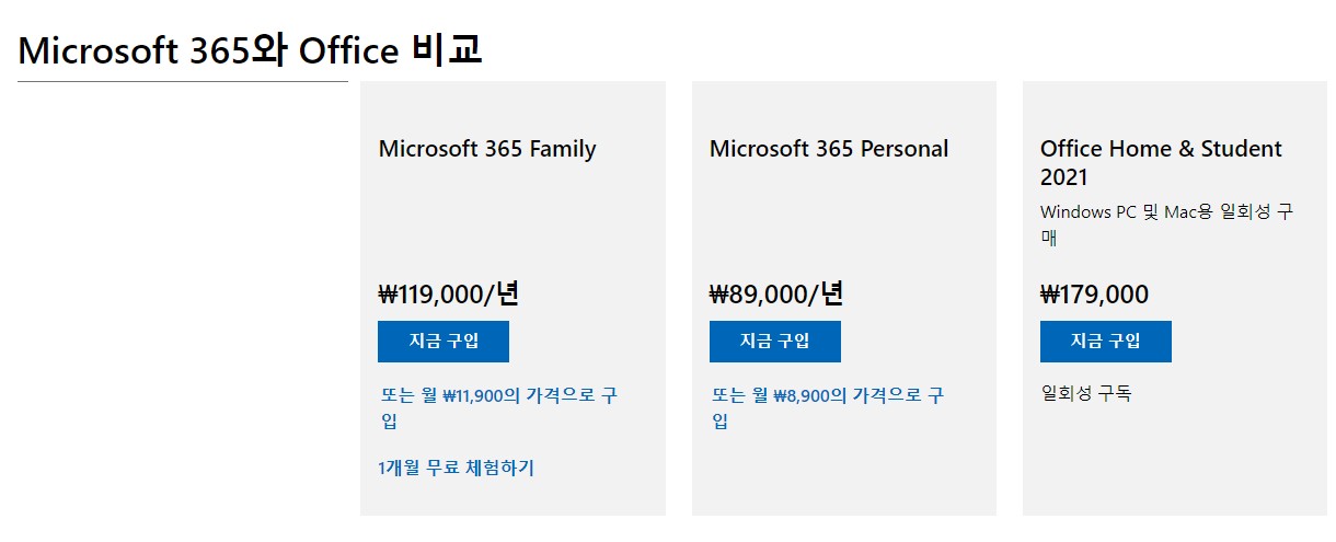 기타 personal 버전과 아니면 office home student 기능도 잇으니 필요에 따라서 선택해주시면 됩니다.